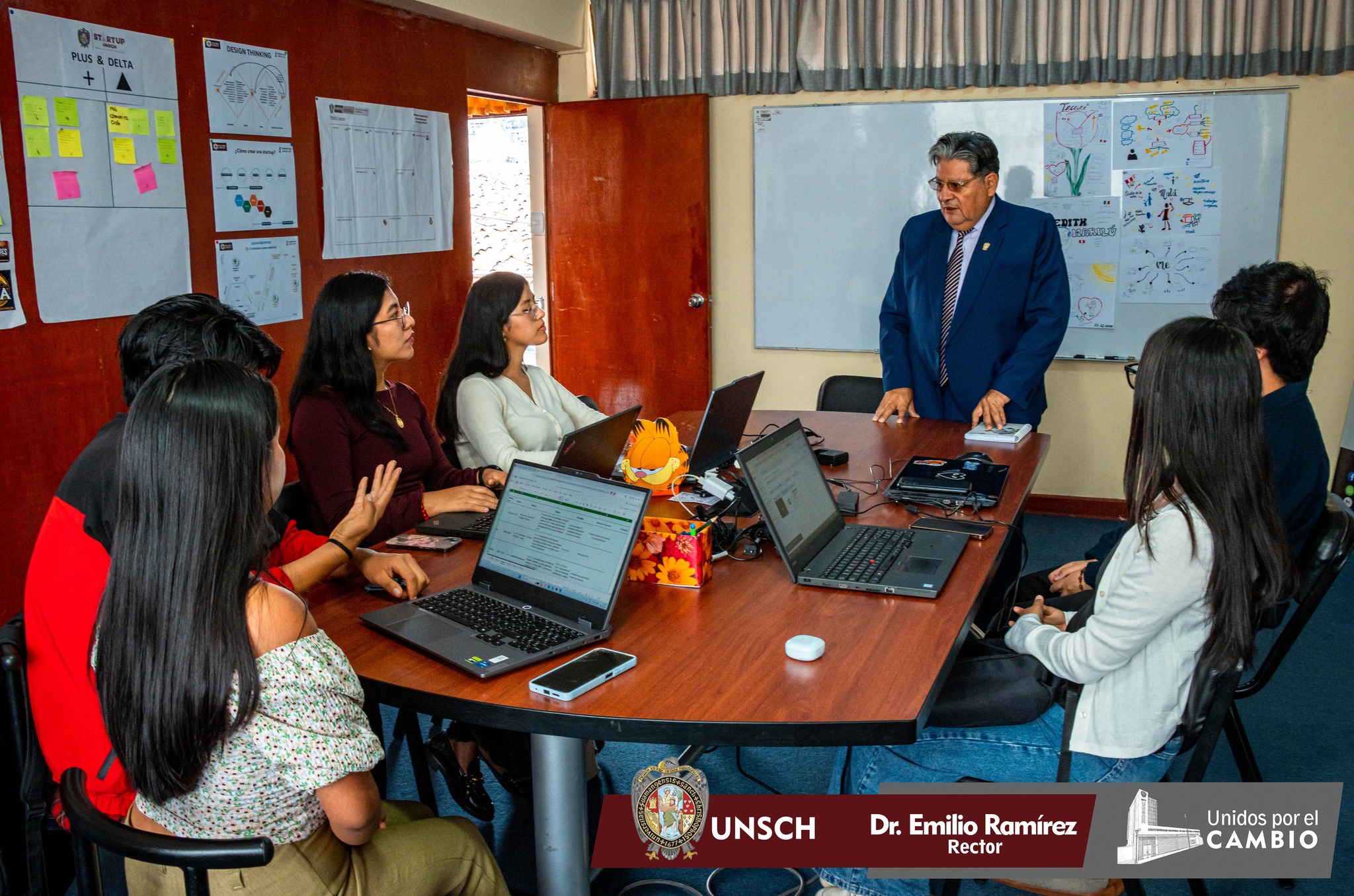 En esta bienvenida estuvieron presentes el Dr. José A. Quispe, vicerrector de Investigación, y el Econ. Aldo Vega Arroyo, director de Incuba UNSCH, quienes resaltaron que este voluntariado representa una valiosa oportunidad para fortalecer competencias en comunicación, liderazgo y trabajo colaborativo, además de integrarse activamente al ecosistema de innovación que impulsa el desarrollo regional.