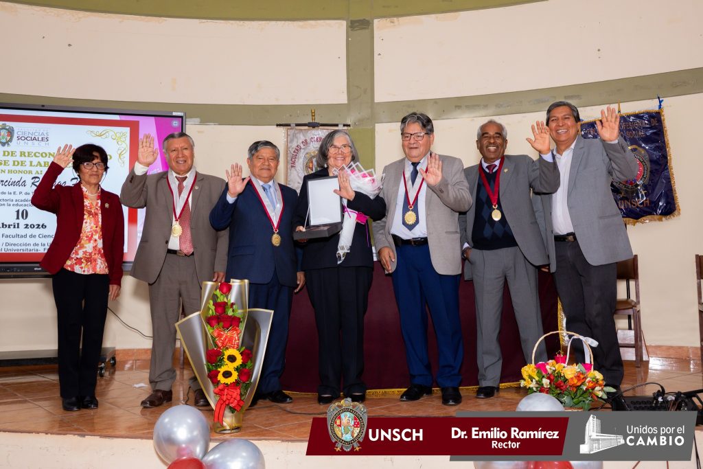 La Facultad de Ciencias Sociales de la Universidad Nacional de San Cristóbal de Huamanga rindió un emotivo homenaje a la Dra. Gumercinda Reynaga Farfán, destacada docente de la Escuela Profesional de Trabajo Social, en reconocimiento a su valiosa trayectoria académica y su firme compromiso con la formación de profesionales al servicio de la sociedad.